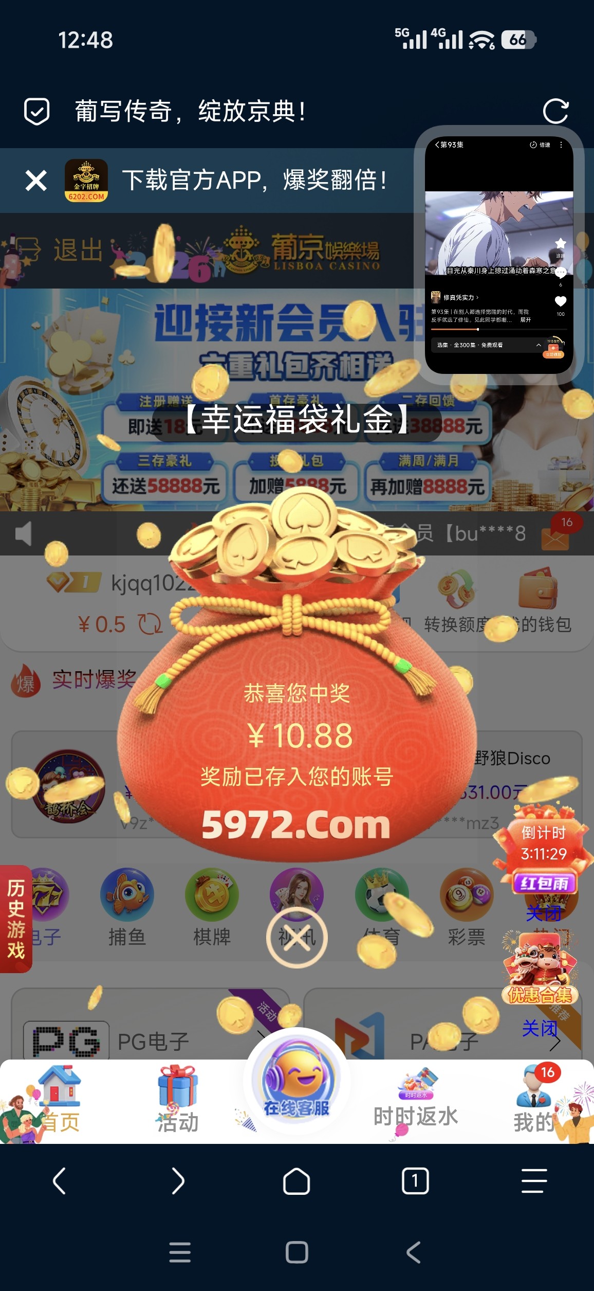 送了18 提了300不知道到不到 去碰瓷客服