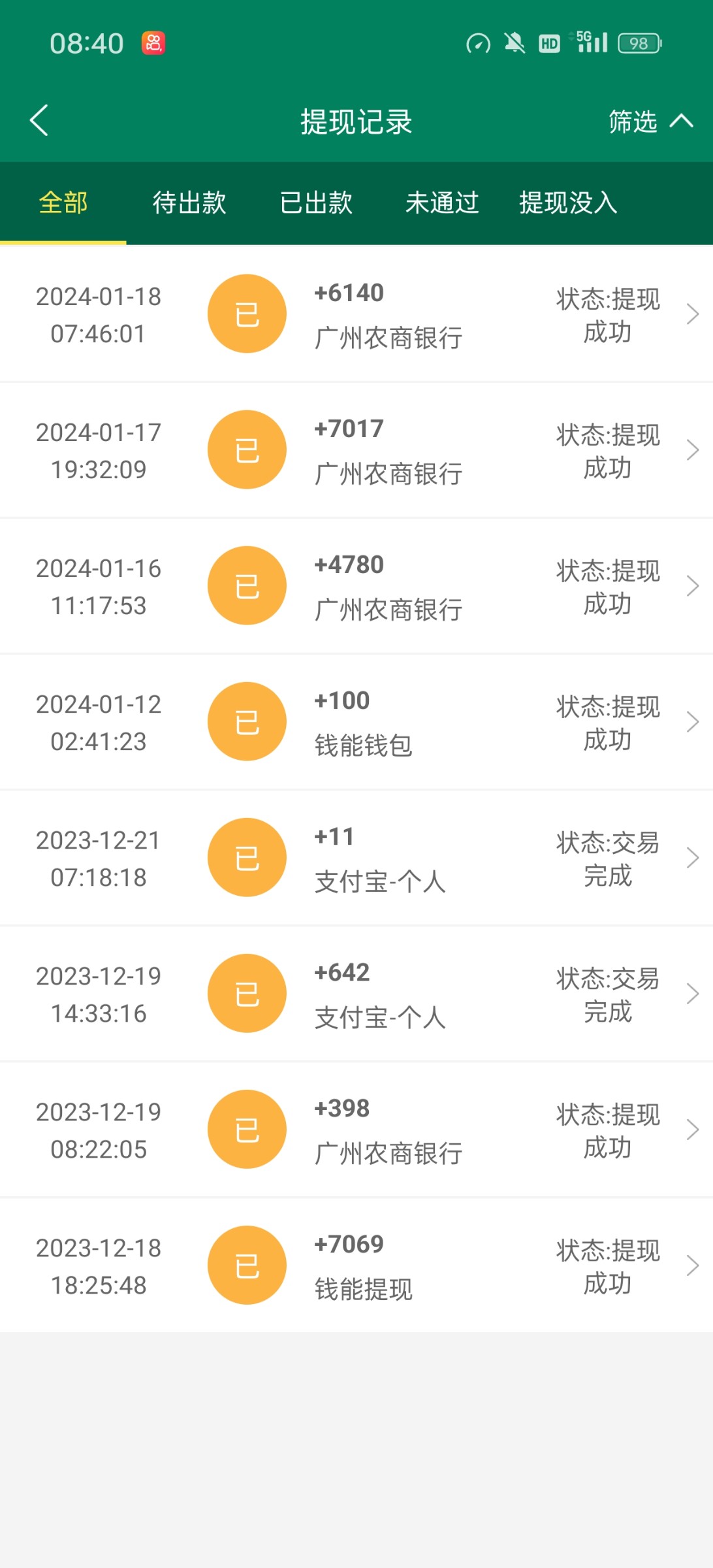 查收,888已到账。