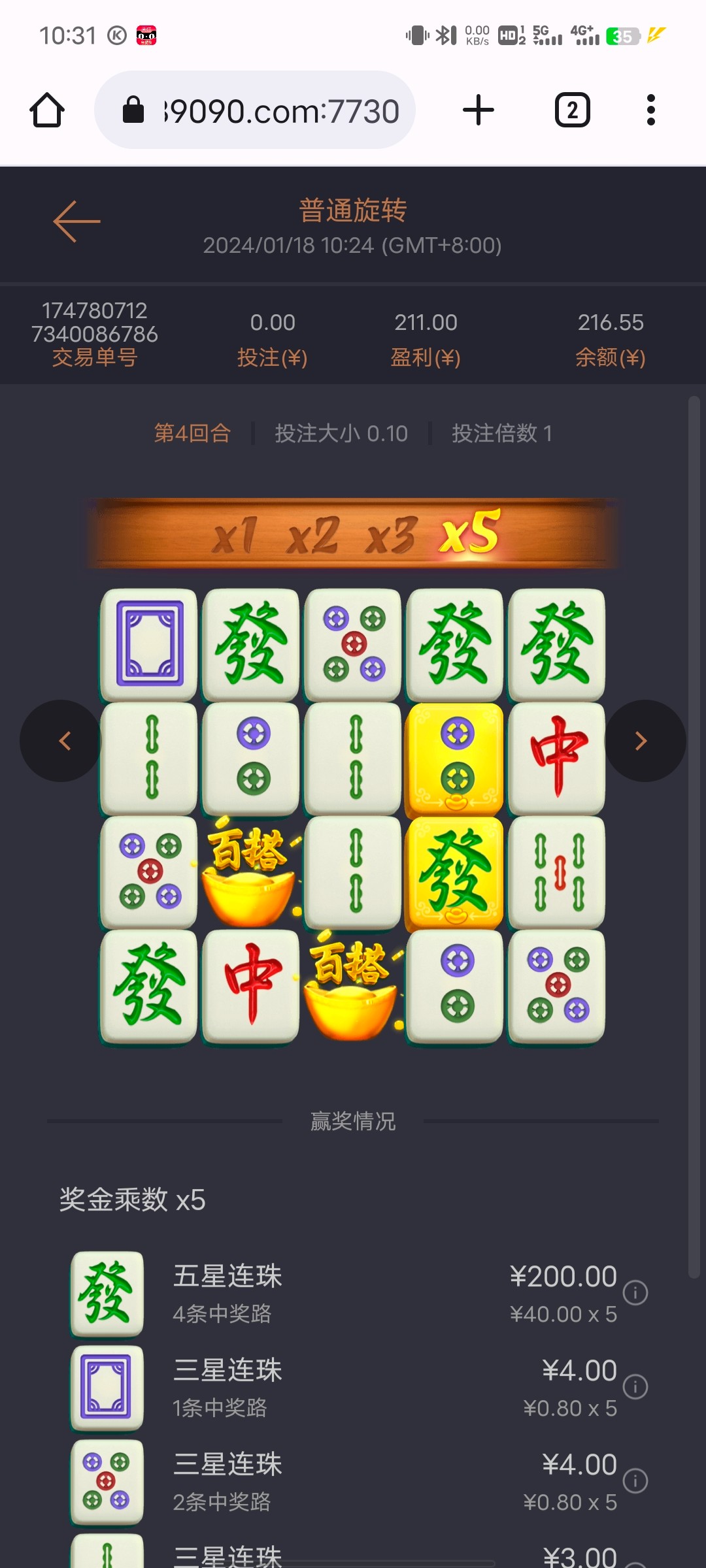 这两天不知道怎么了,玩电子就爆,下午2块一拉麻将爆400多倍。昨天前天也是爆。就去那个狗杂种的jnd去一次输一次