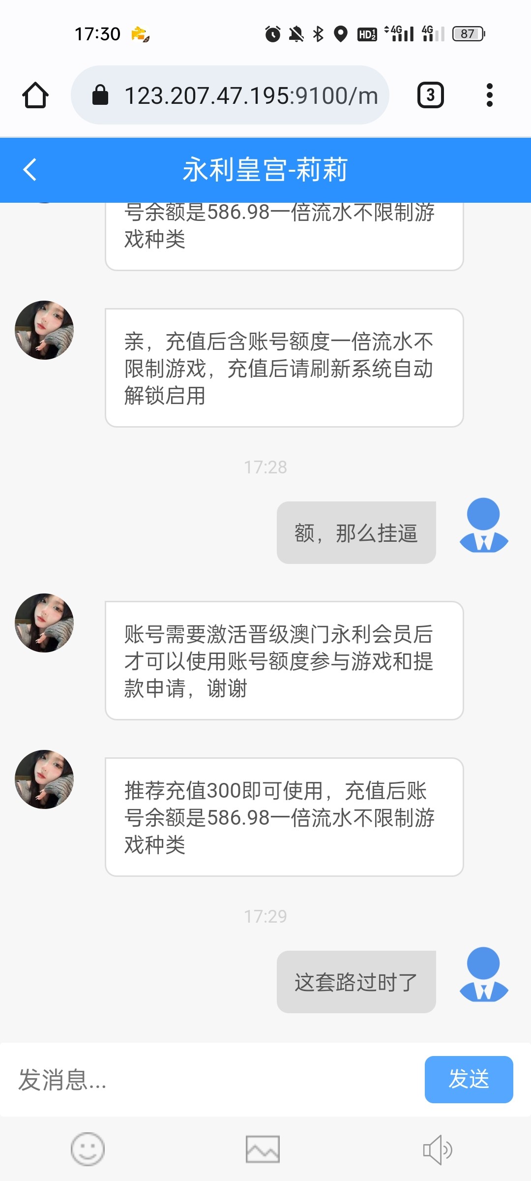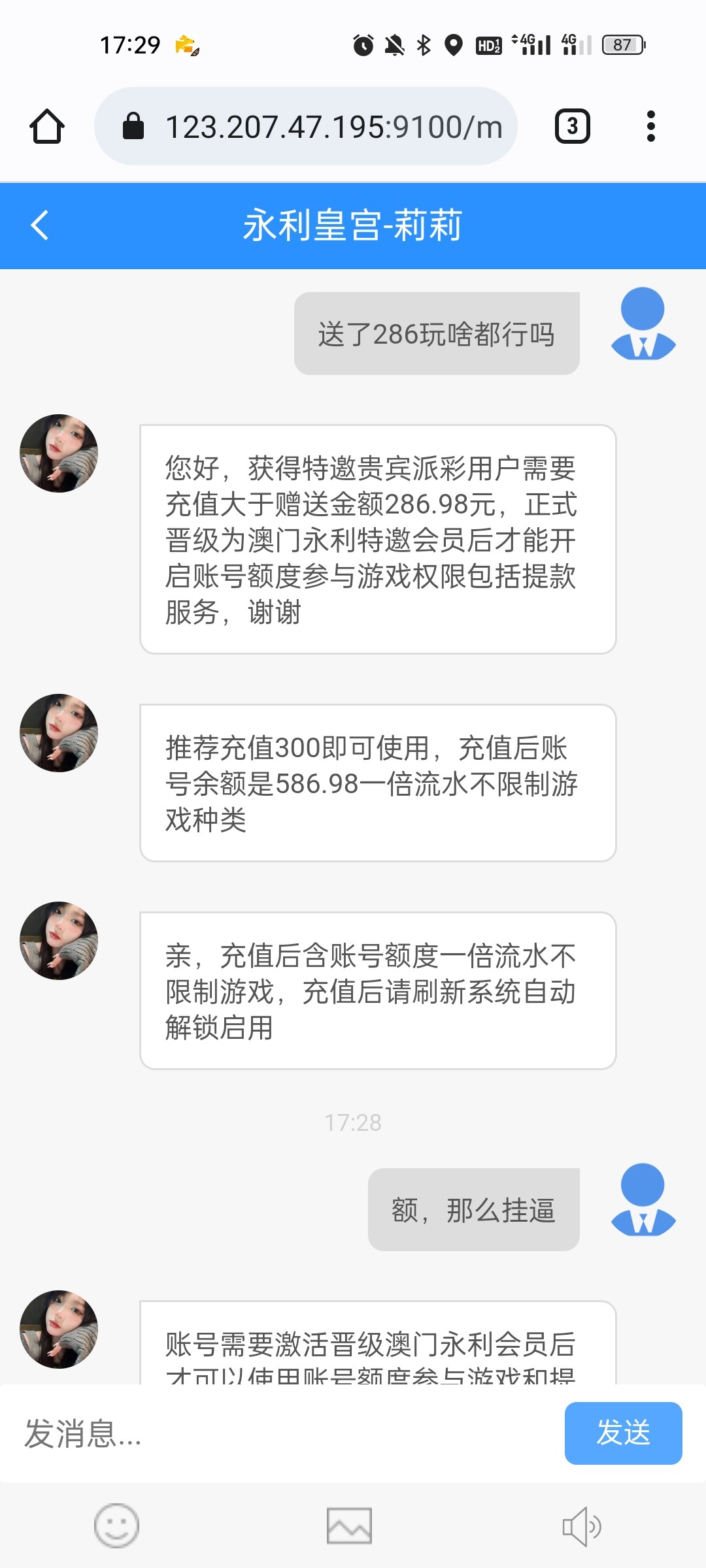 慕杨666: 真有经验的老哥告诉你这客服模本两三百块钱搭的,一眼黑