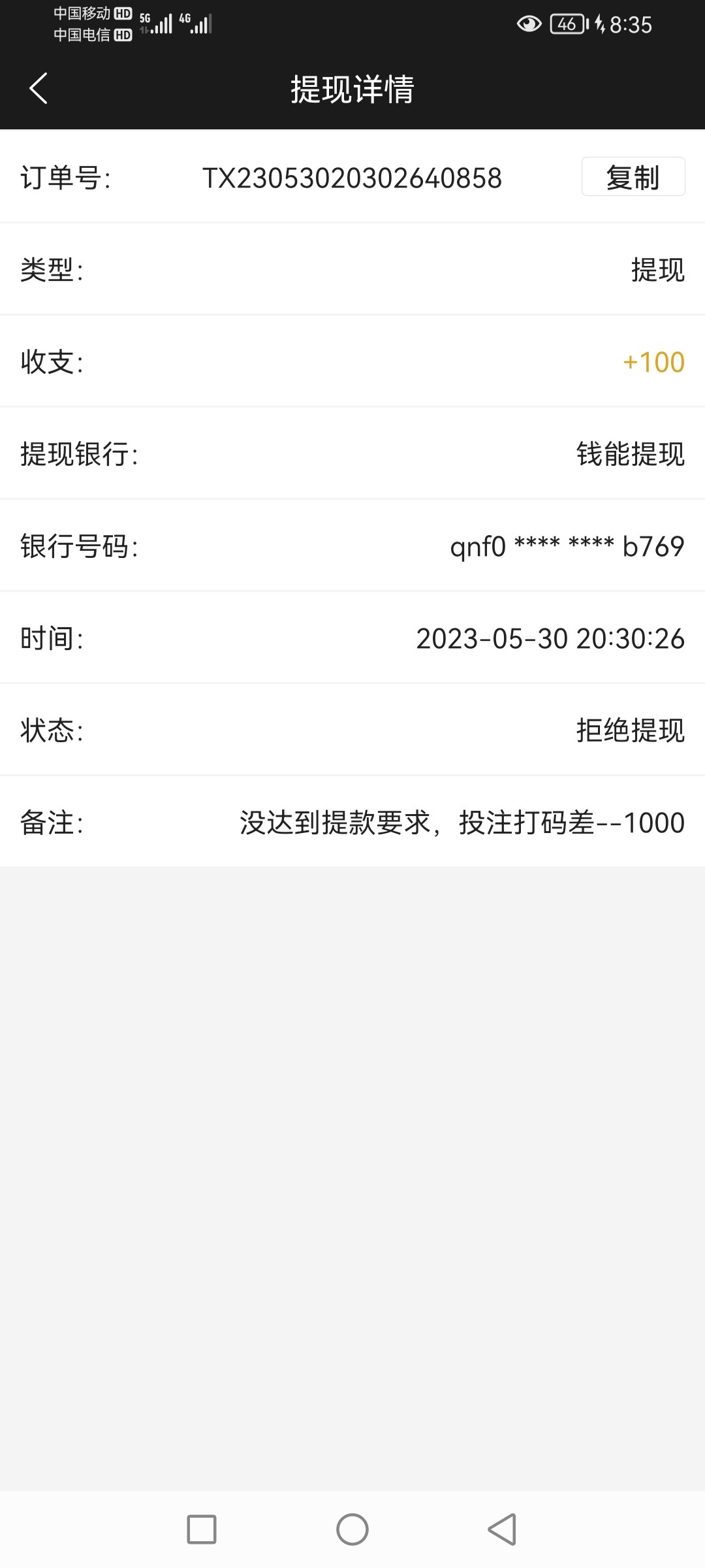 662充值了几笔,都是500起步,没提过,抢红包麻将打了40多都黑了,一个账号,还在充值的玩家自己小心点