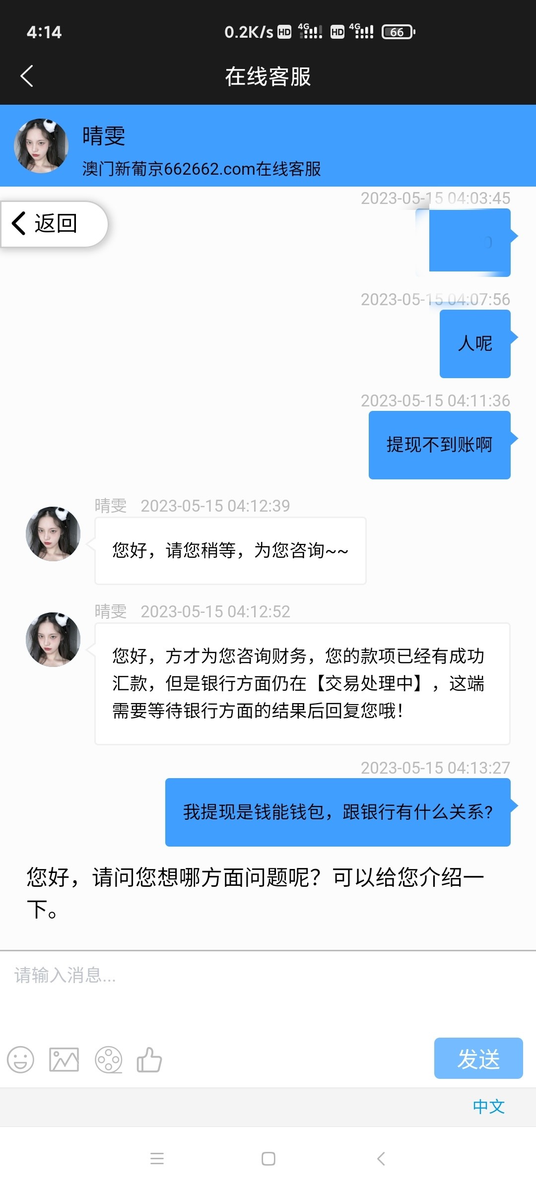 昨晚出款到现在都不回信息