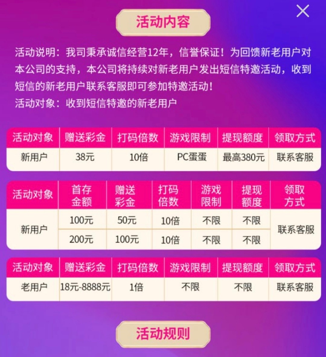 新用户注册绑卡联系客服申请特邀彩金,特邀碰瓷要图就制作吧下方有短信图,老用户也有回馈勿充值