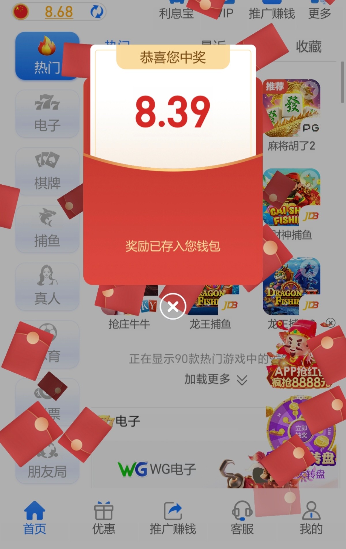 每天登录账号可以领好几次红包,不用充值这个数额还是不错的