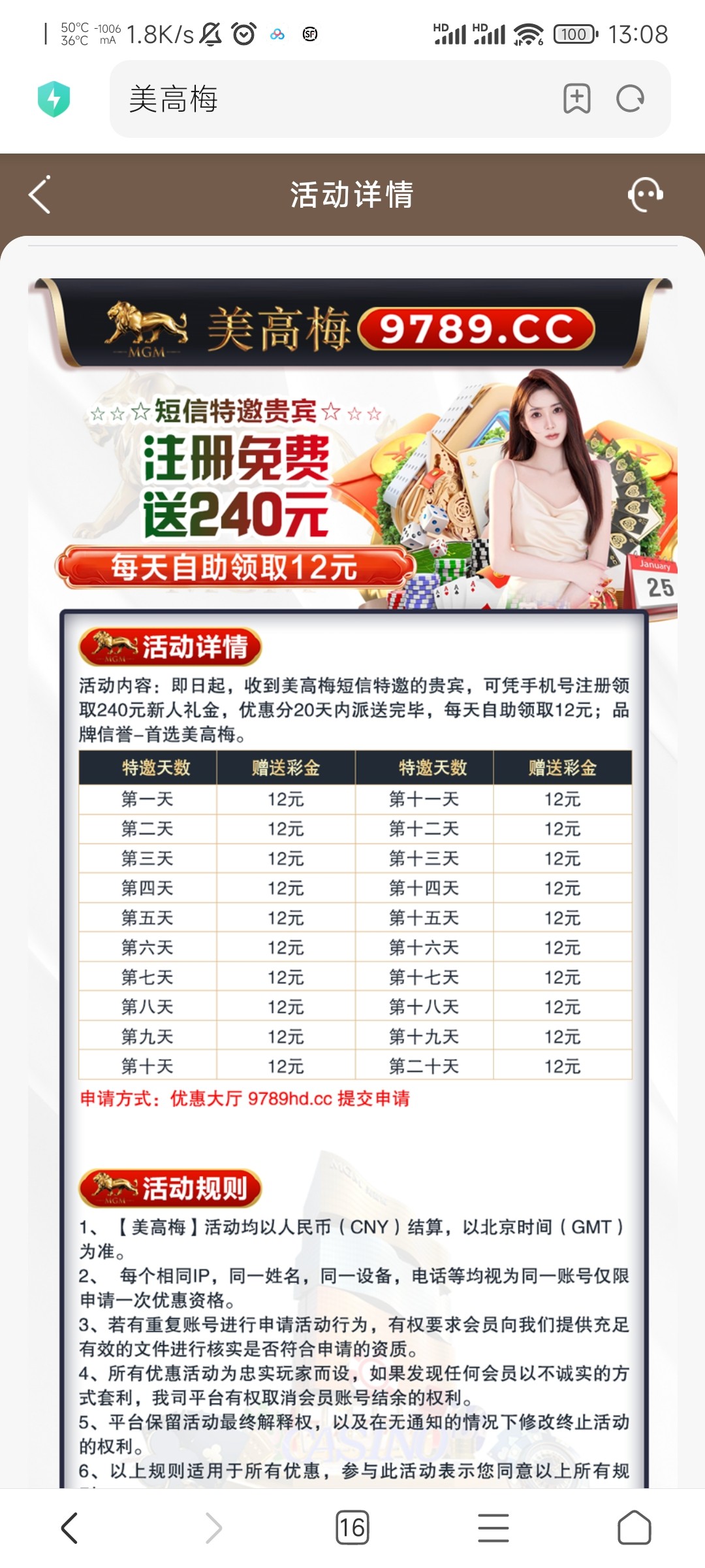 新用户注册绑卡优惠大厅自助申请特邀彩金100提。申请到即可连续送20天【建议每天月适当充值一次,不然容易被黑】 白嫖金额过大建议充个10块,防止被黑