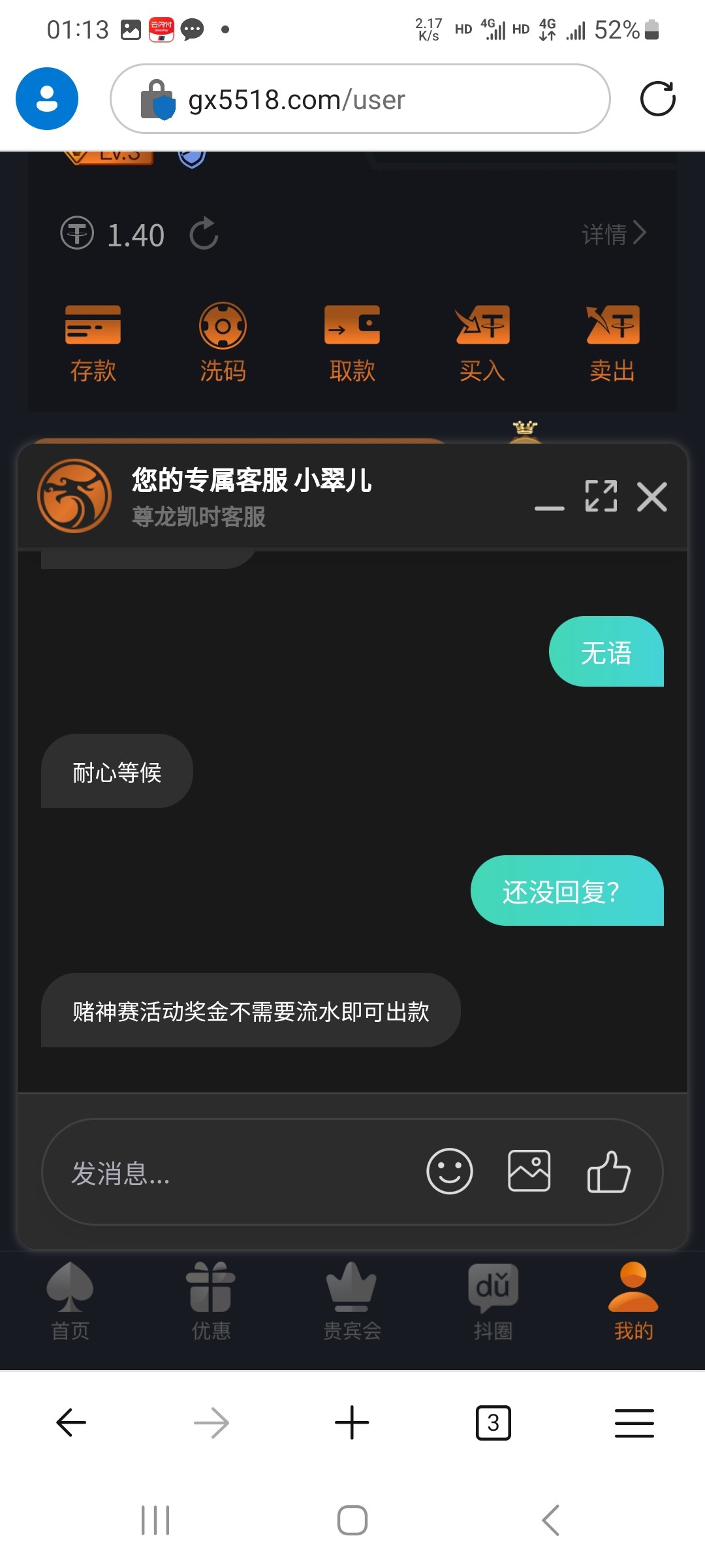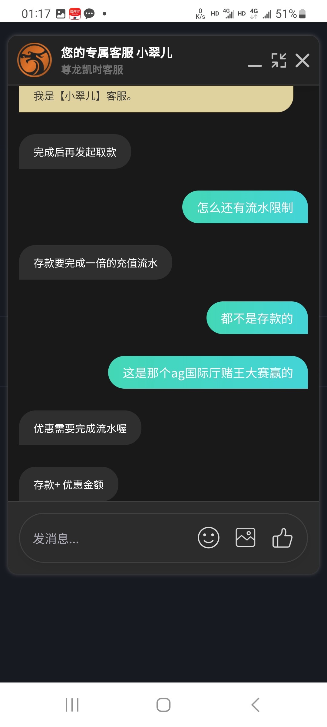 赌神赛赢的一直拒绝提现。问客服说要打流水。还一直完不成。等输完了又说不要流水就可以取款。去年还在这台净输十几万,没想到这么恶心。说这台不黑的迟早就明白了