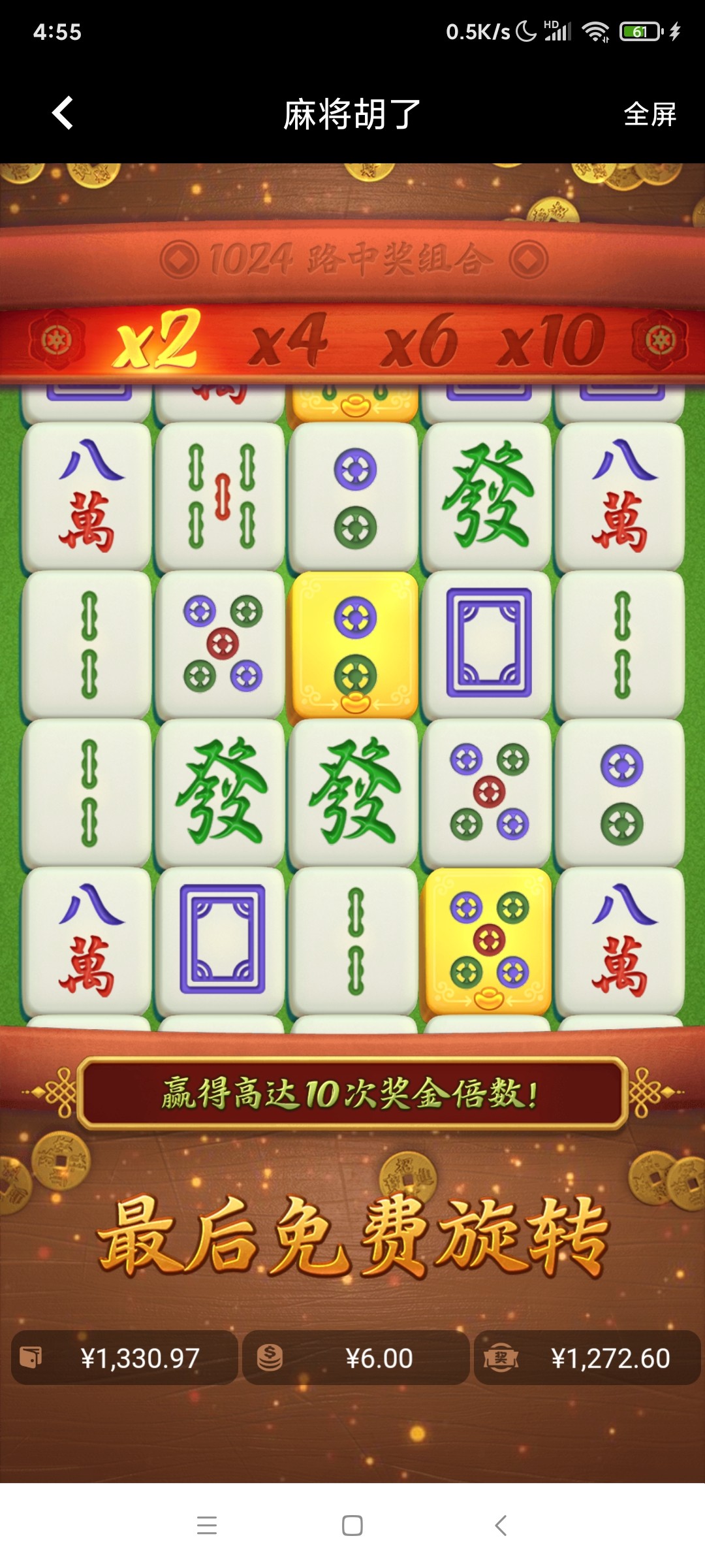 嘛一有百搭吗    我那个平台没有      所以我都不玩嘛一      1.2一拉    上次20次免费爆了8块钱    从次不玩嘛一
