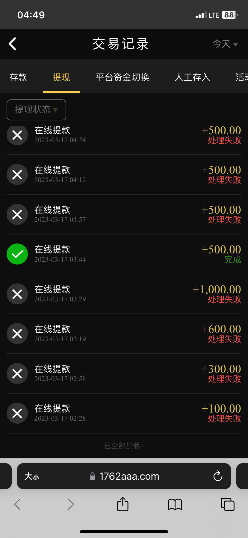 刚到,提777被退回,重新提500出了,这个送的50最高提500