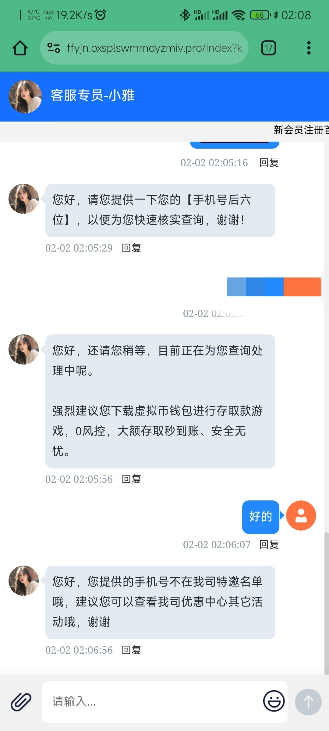 您好,您提供的手机号不在我们名单内,请您确认后重新提供,谢谢