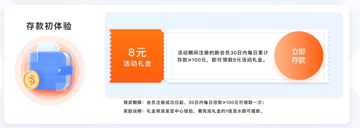 新用户注册绑卡 优惠里面新人活动自助领取8元彩金 游戏和提款限制自行查看优惠 这种体育台提100比较容易出款 多了容易黑