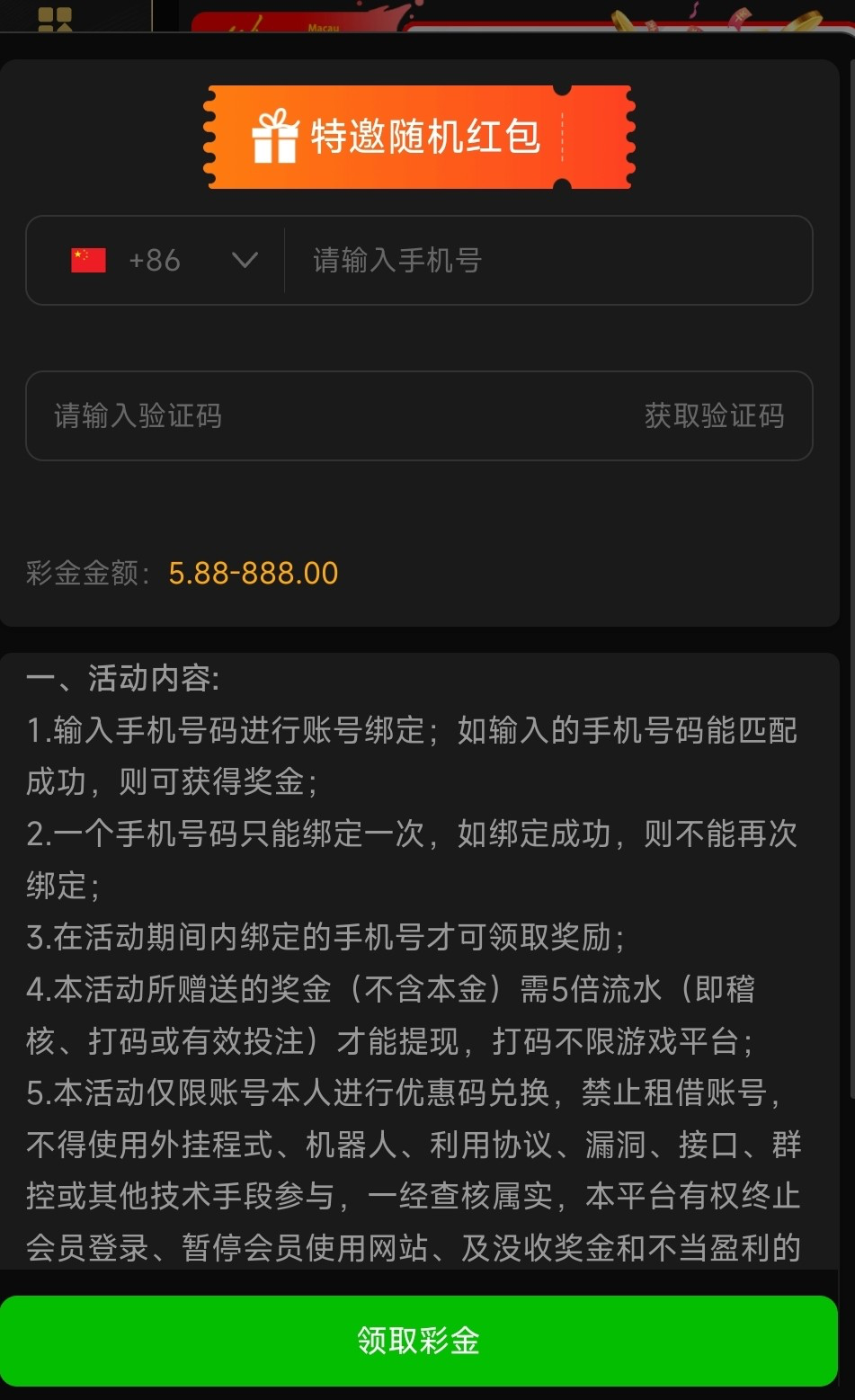 老用户3月5号前注册,没充值过的登录领8彩金。