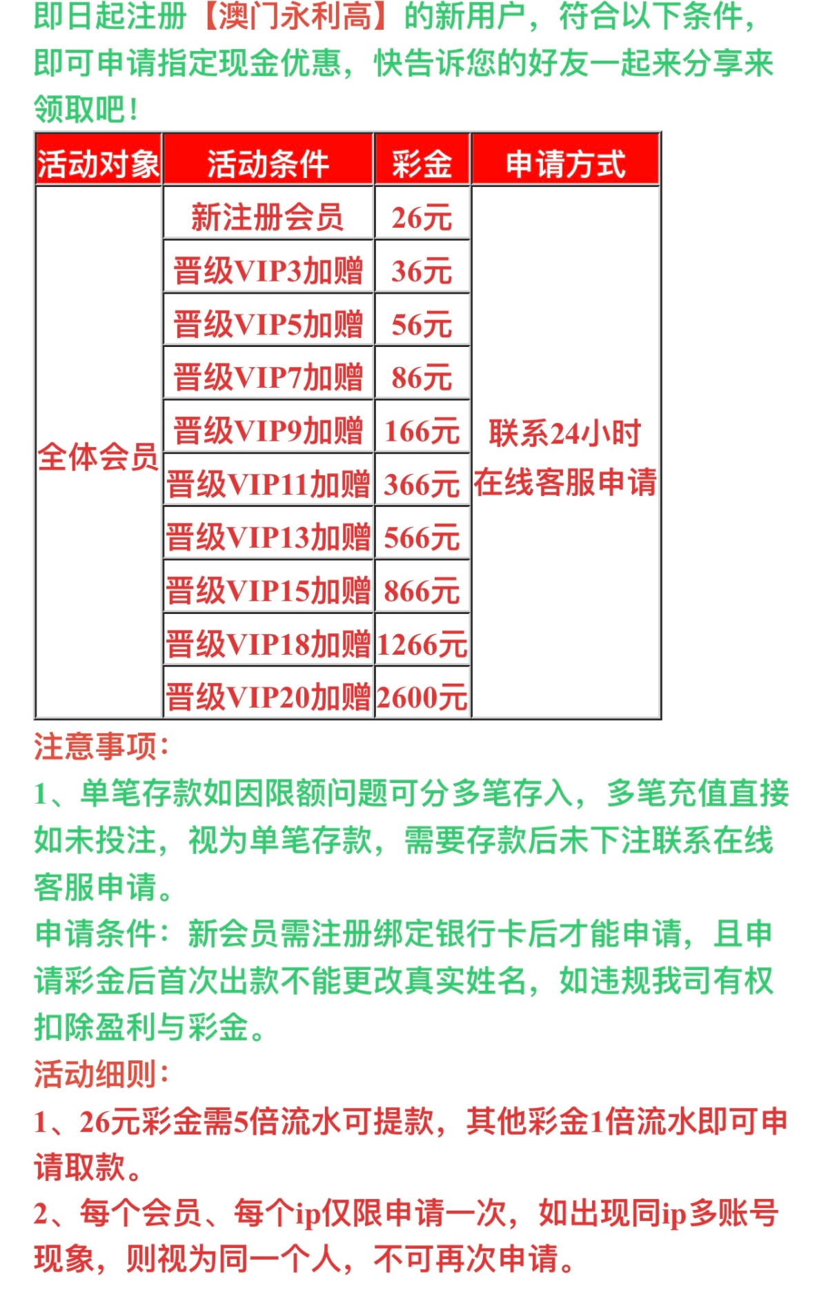 新用户下载注册绑卡,完善信息,联系在线客服申请26彩金,活动详情平台查看,具体自测!