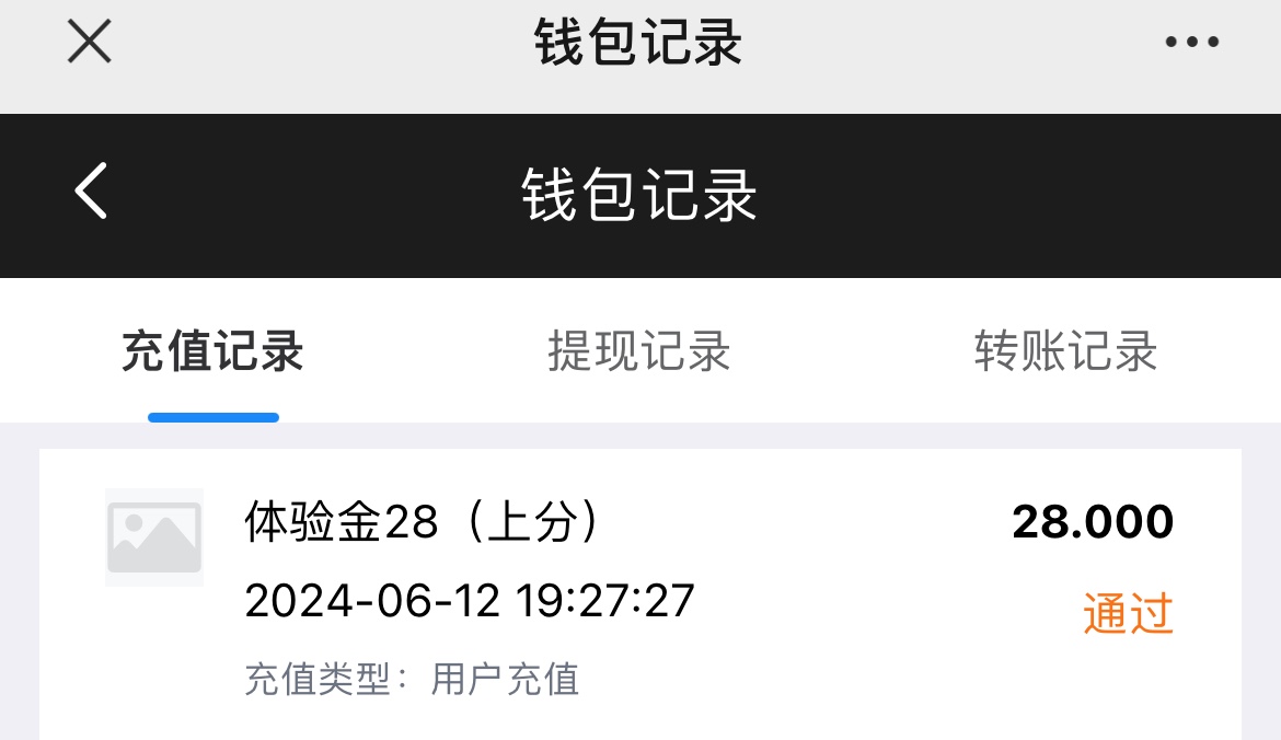 微信扫码去充值选项选择体验金充值 秒到28 打到288下28