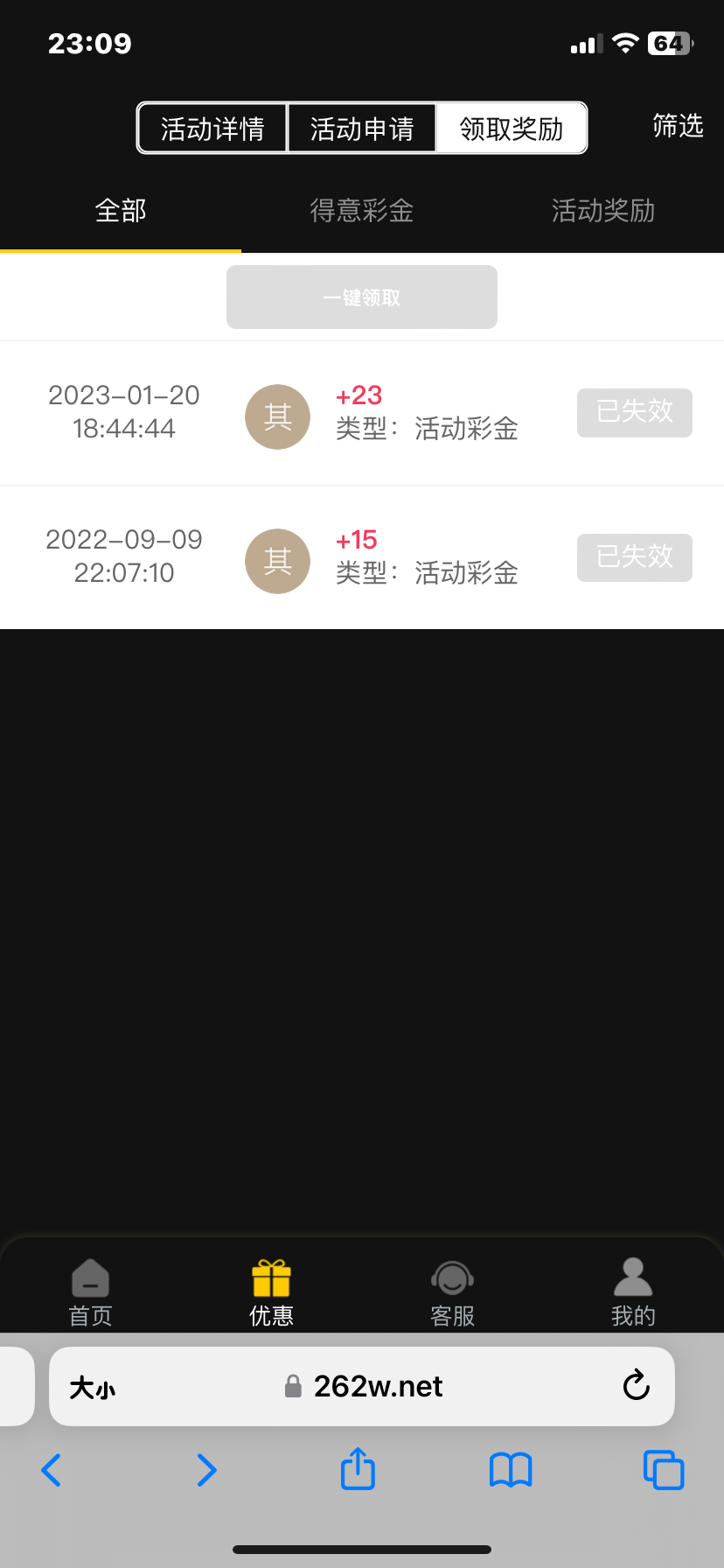 马克笔回馈彩金过期了