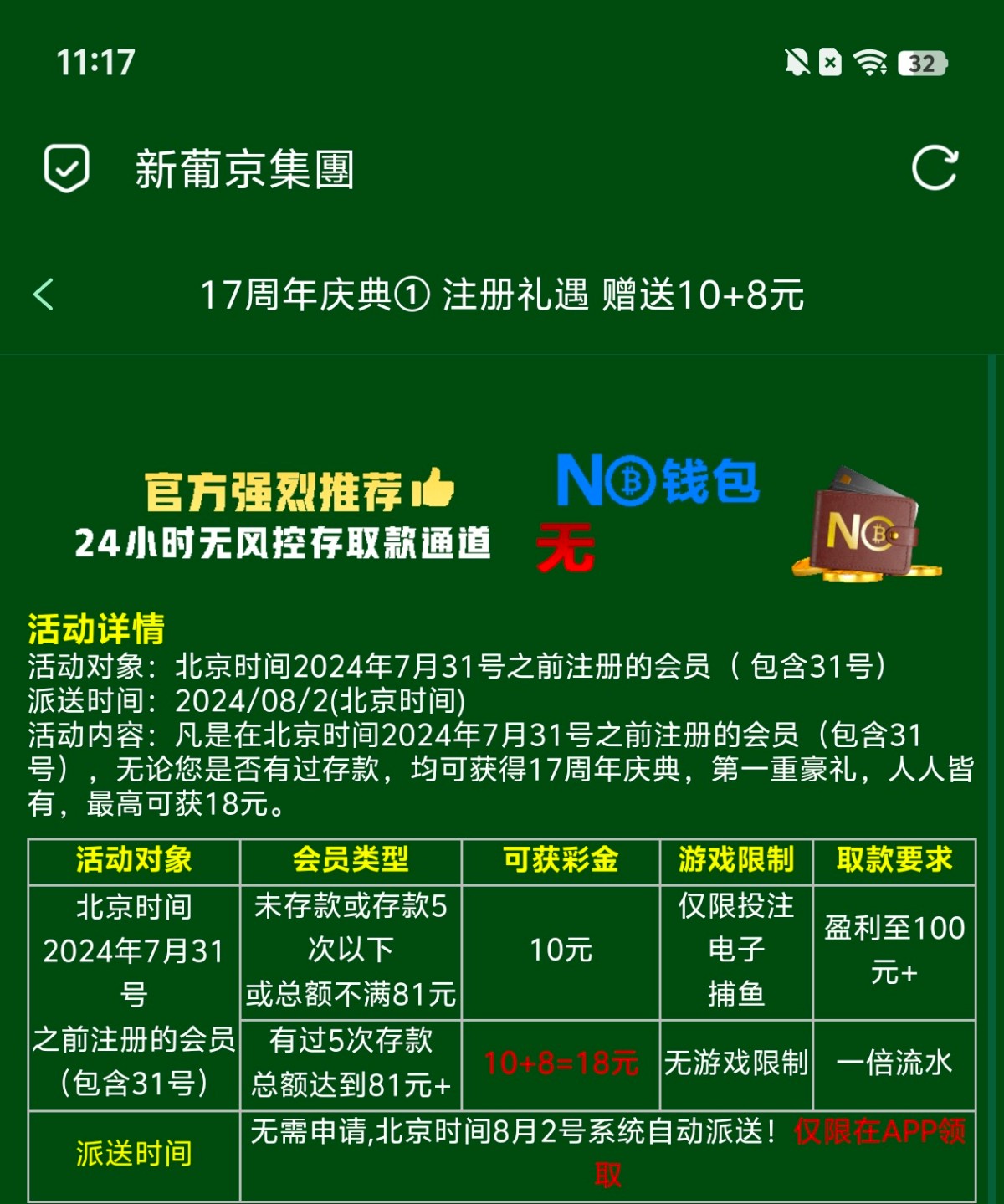 8月1号最低回馈10目前可以参加抢红包活动https://www.1010081.com/?id=977571581¤cy=CNY&type=2