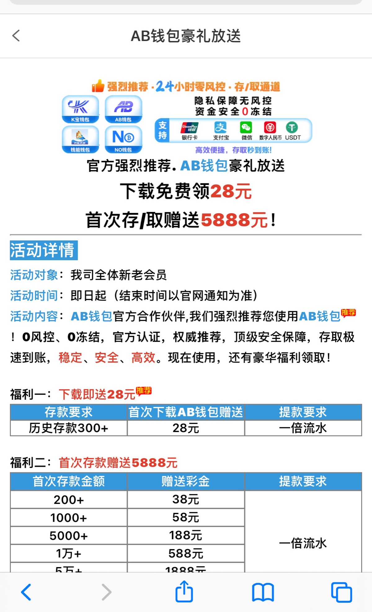 之前是下载K宝钱包送的现在改AB钱包了下载了照样继续送 两个平台都送
