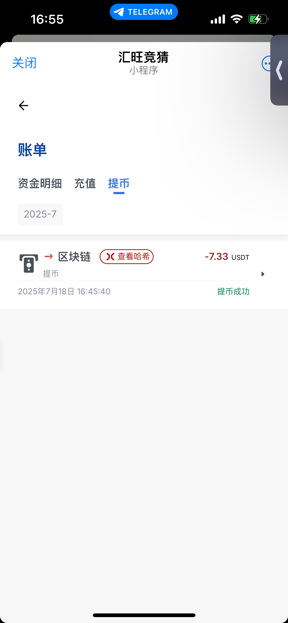 飞机注册汇旺投票,把任务两个做了给五票,直接投票自己想投的,五票投中大概4-5 u左右,汇旺提现需要1u,链上需要2u手续费,不想提的可以继续在竞猜,提现已到账https://t.me/huionepoll_bot/huionepoll?mode=expanded&startapp=1_RLFT_0