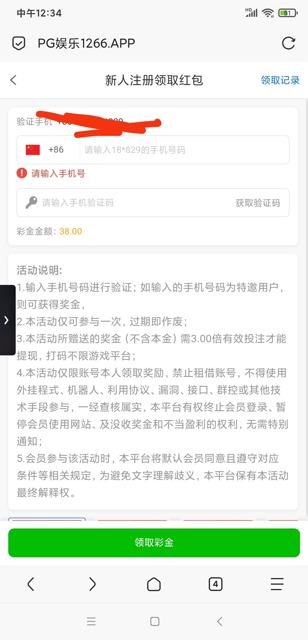 【PG1206】特邀验证手机号领38