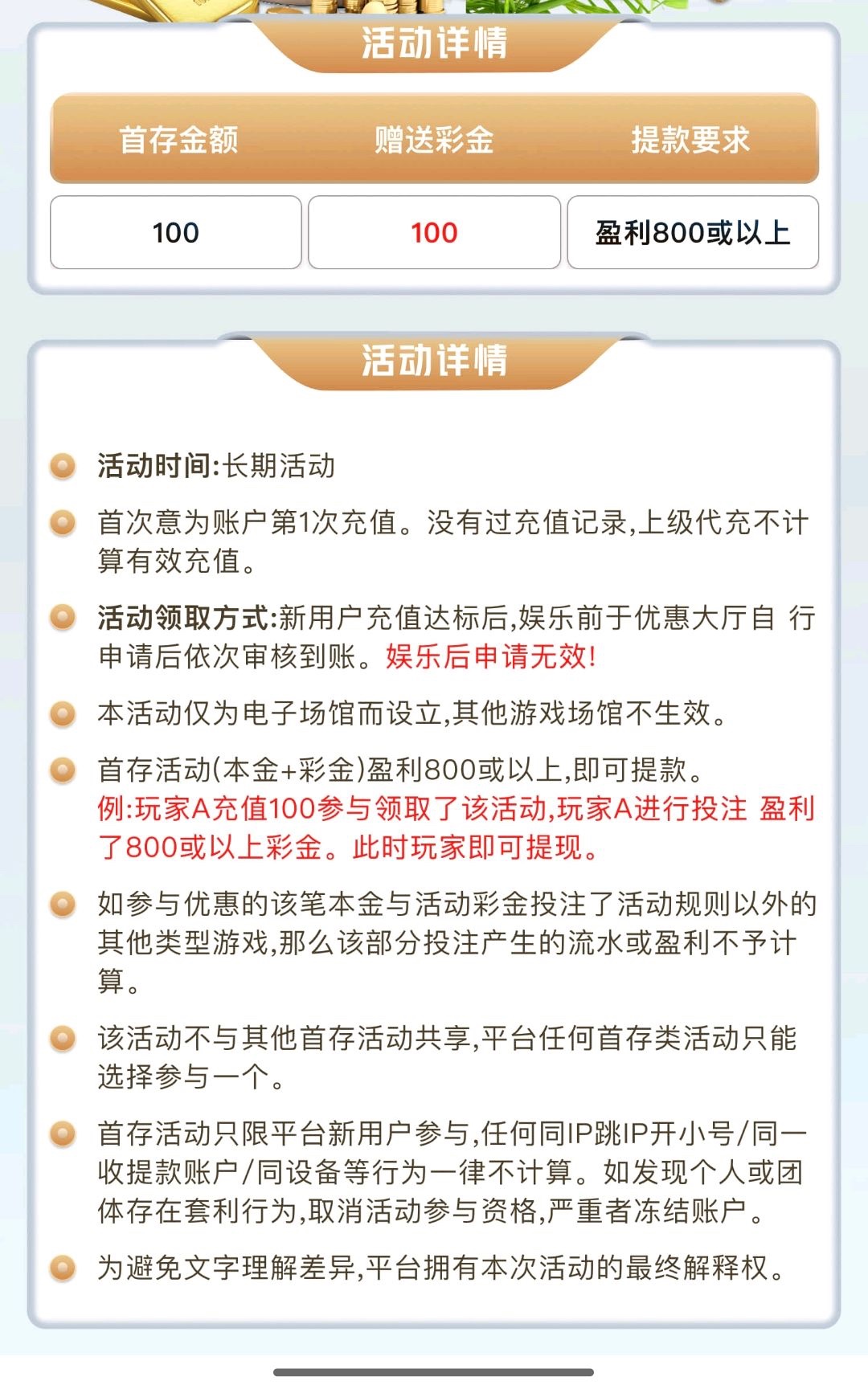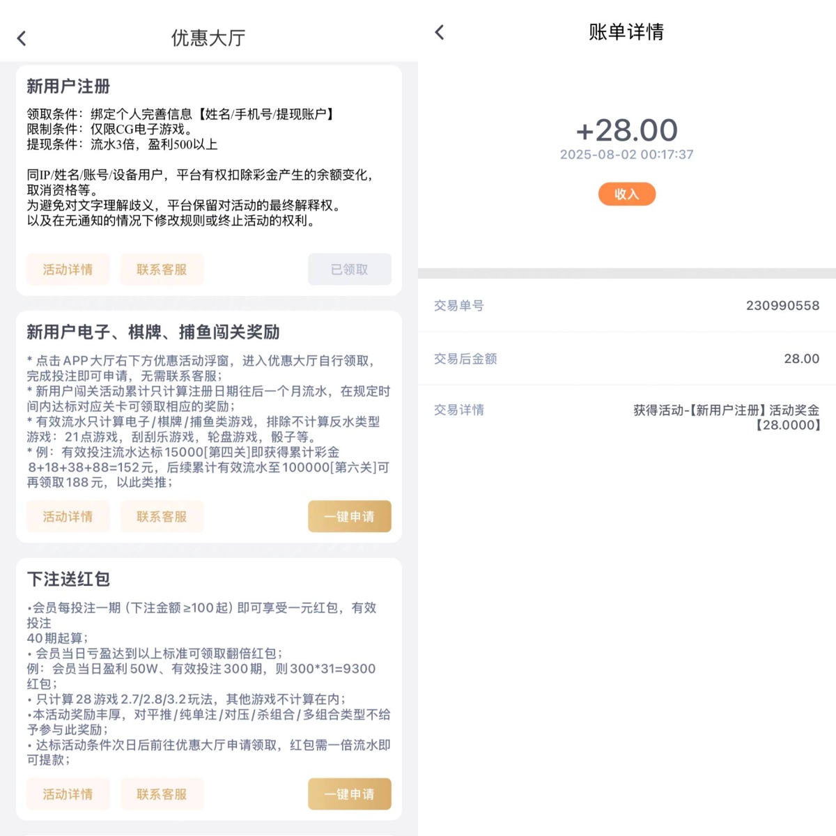 充值后未下注前活动里自助申请