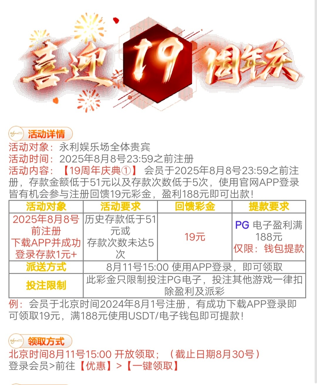 【永利娱乐】19周年回馈
