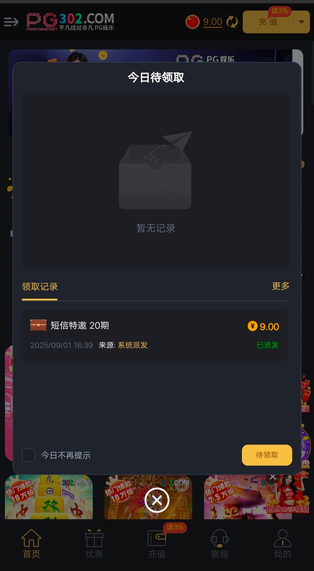 【PG娱乐302】特邀彩金自助申请