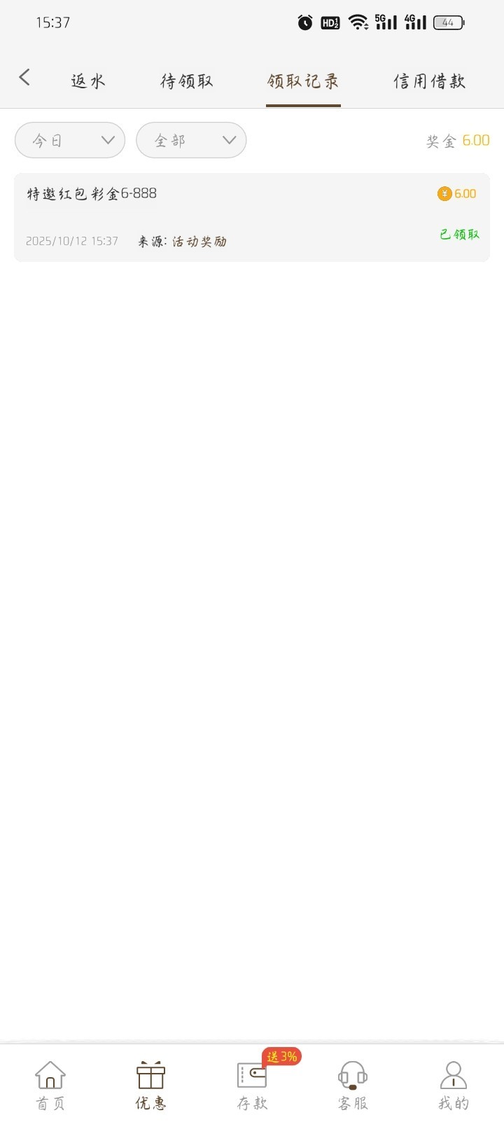 接到电话的注册特邀的话会跳转有个福利袋,领了6块,可以去碰碰