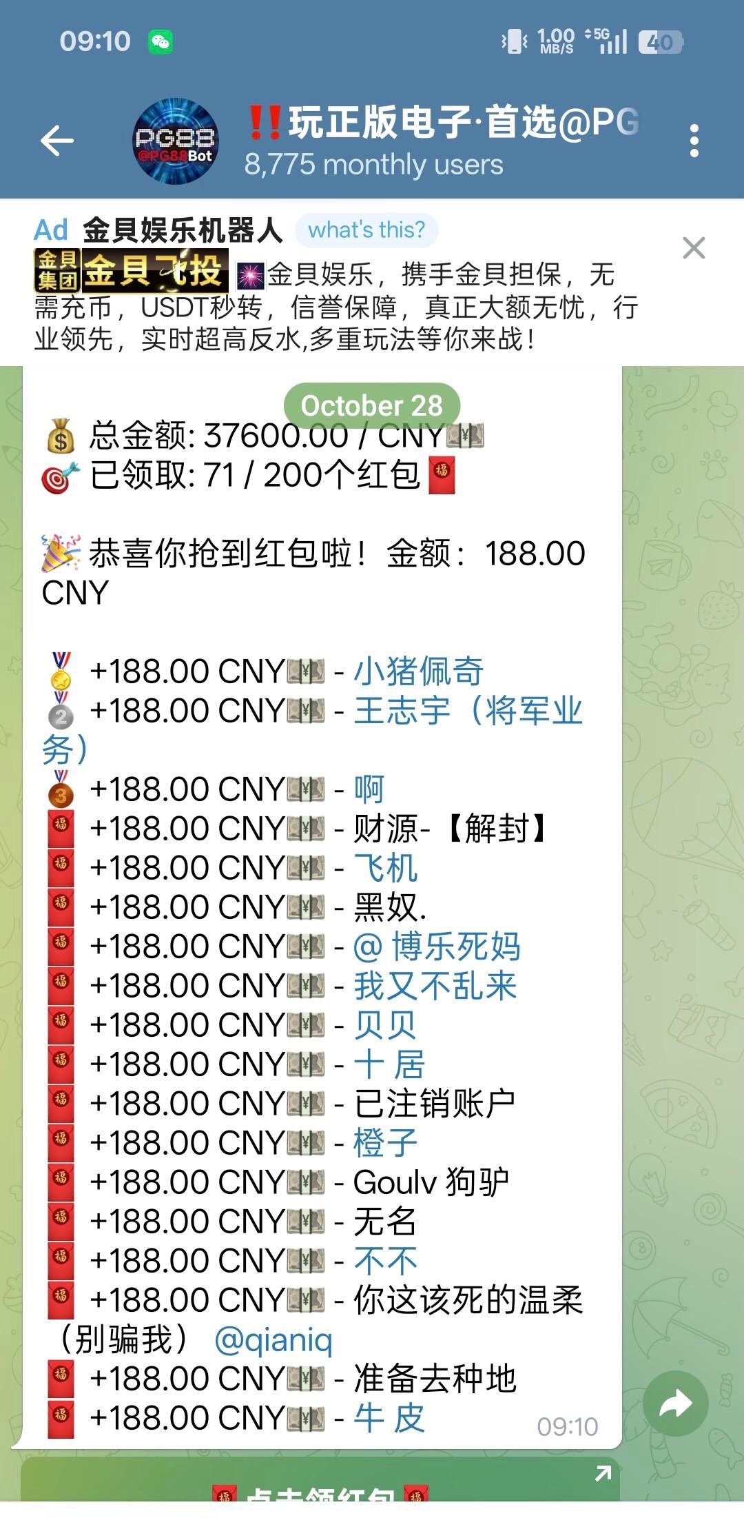 飞机搜索机器人pg88,历史充值500+去抢红包,人人188