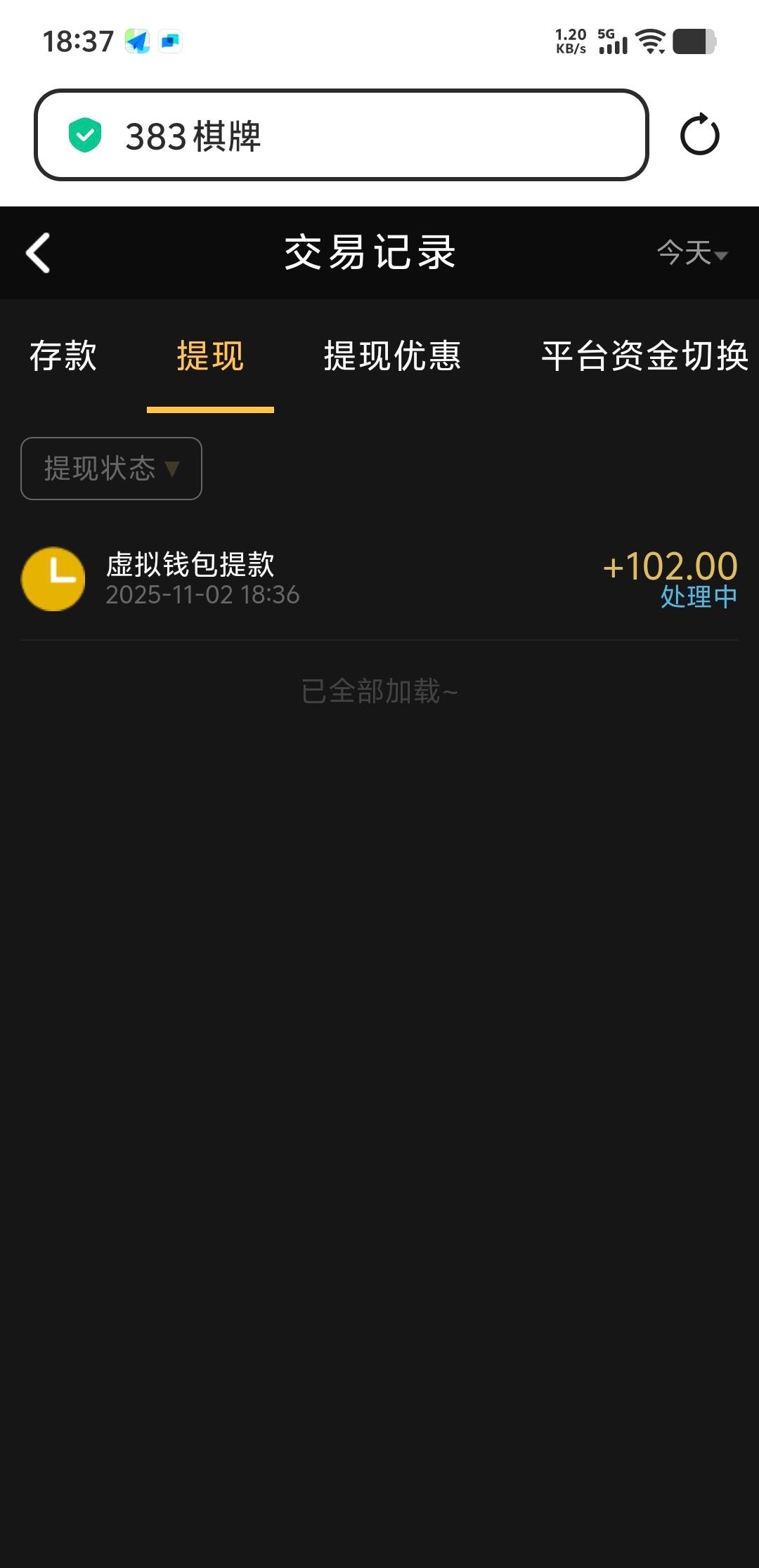 发个处理中说是到账