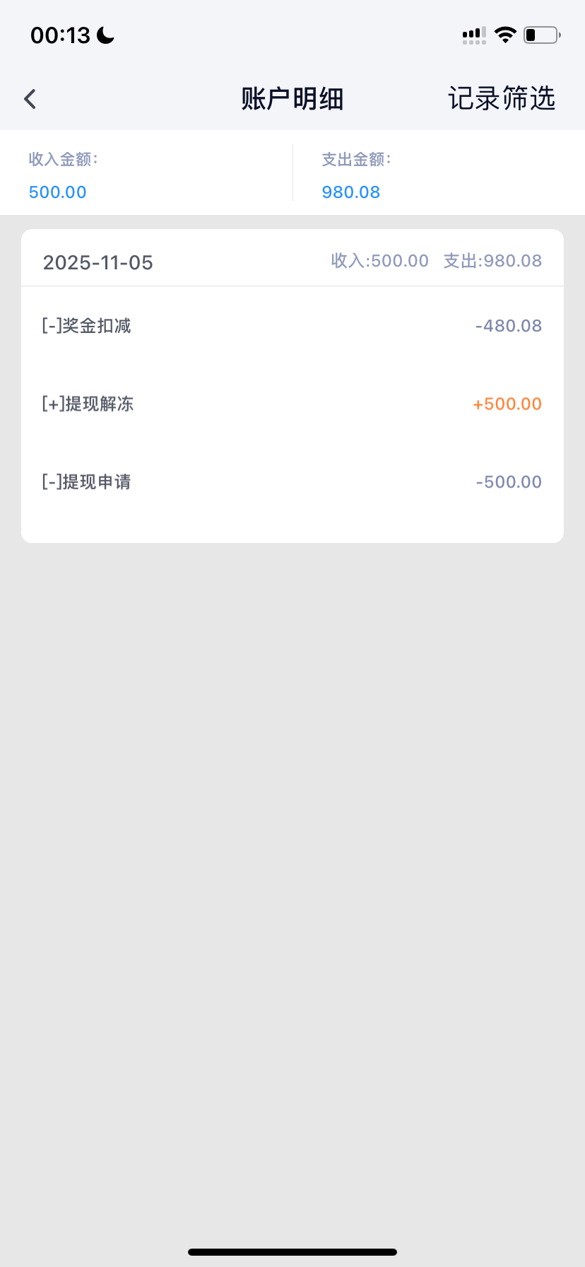 没钱了,全扣除了