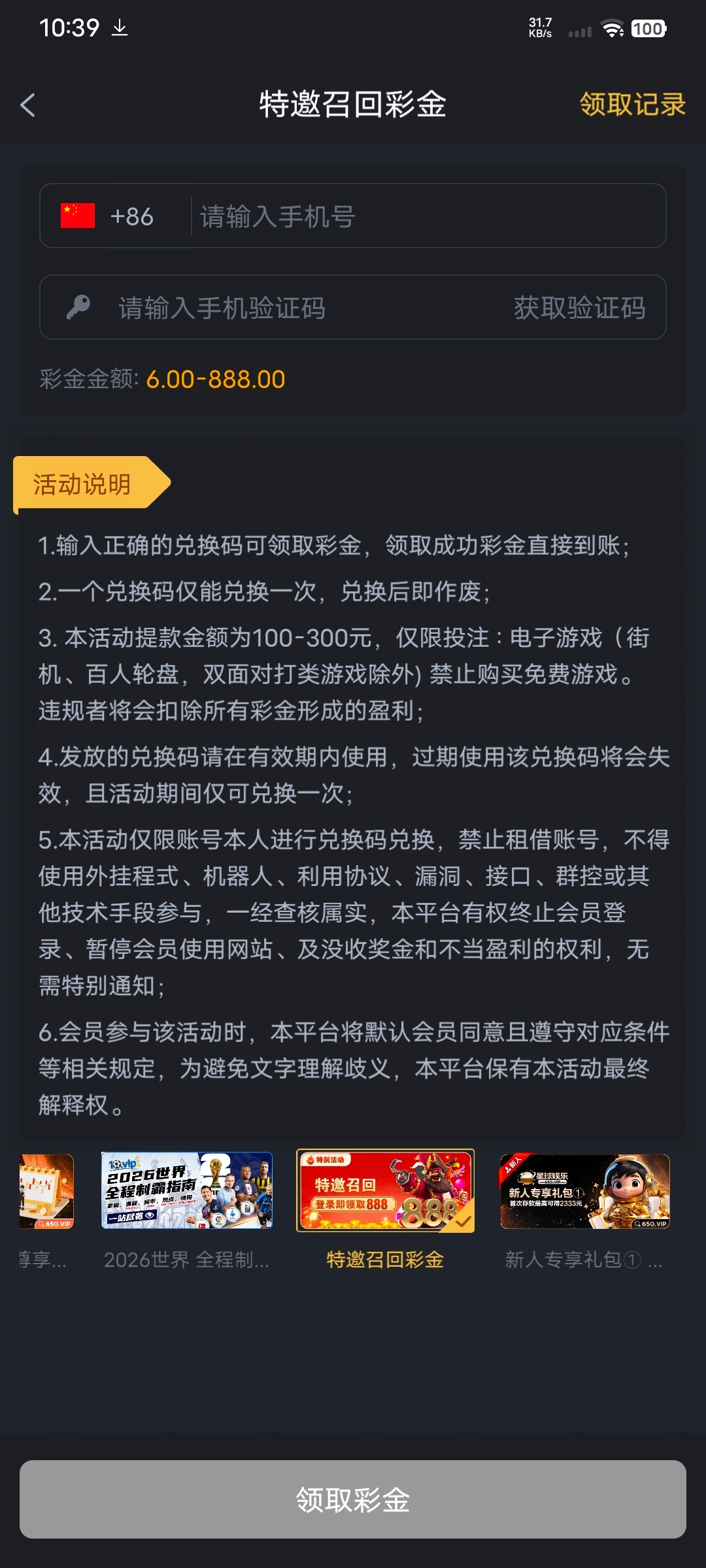 【星球娱乐】特邀召回6~888彩金✅