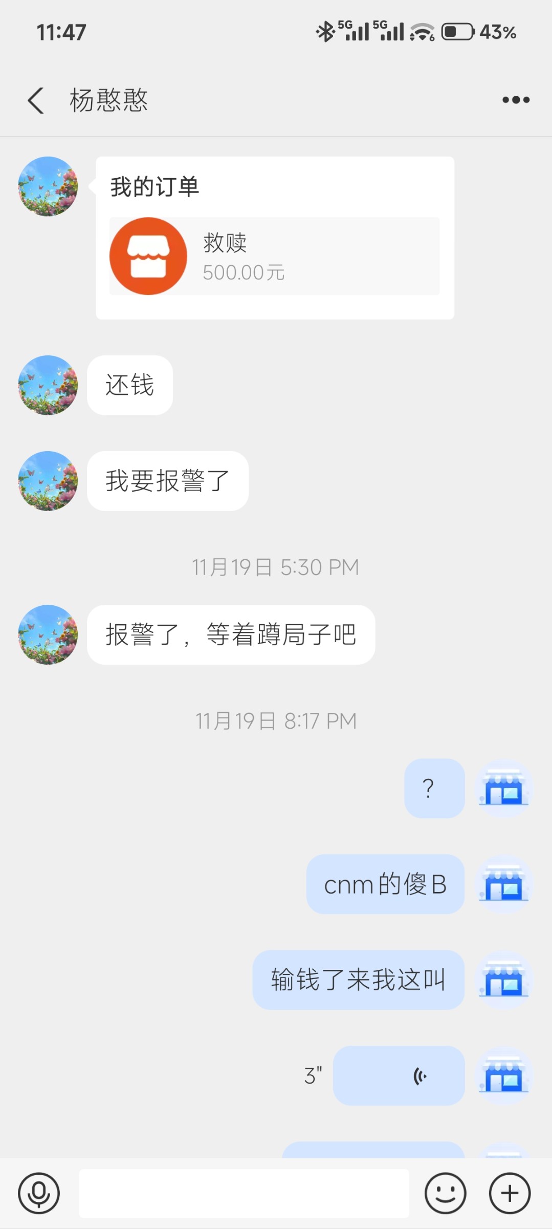 发聊天记录给钱能客服封他号再和他钢 这种输不起的沙雕跟他钢到底就行了 你一点事没有放一万个心
