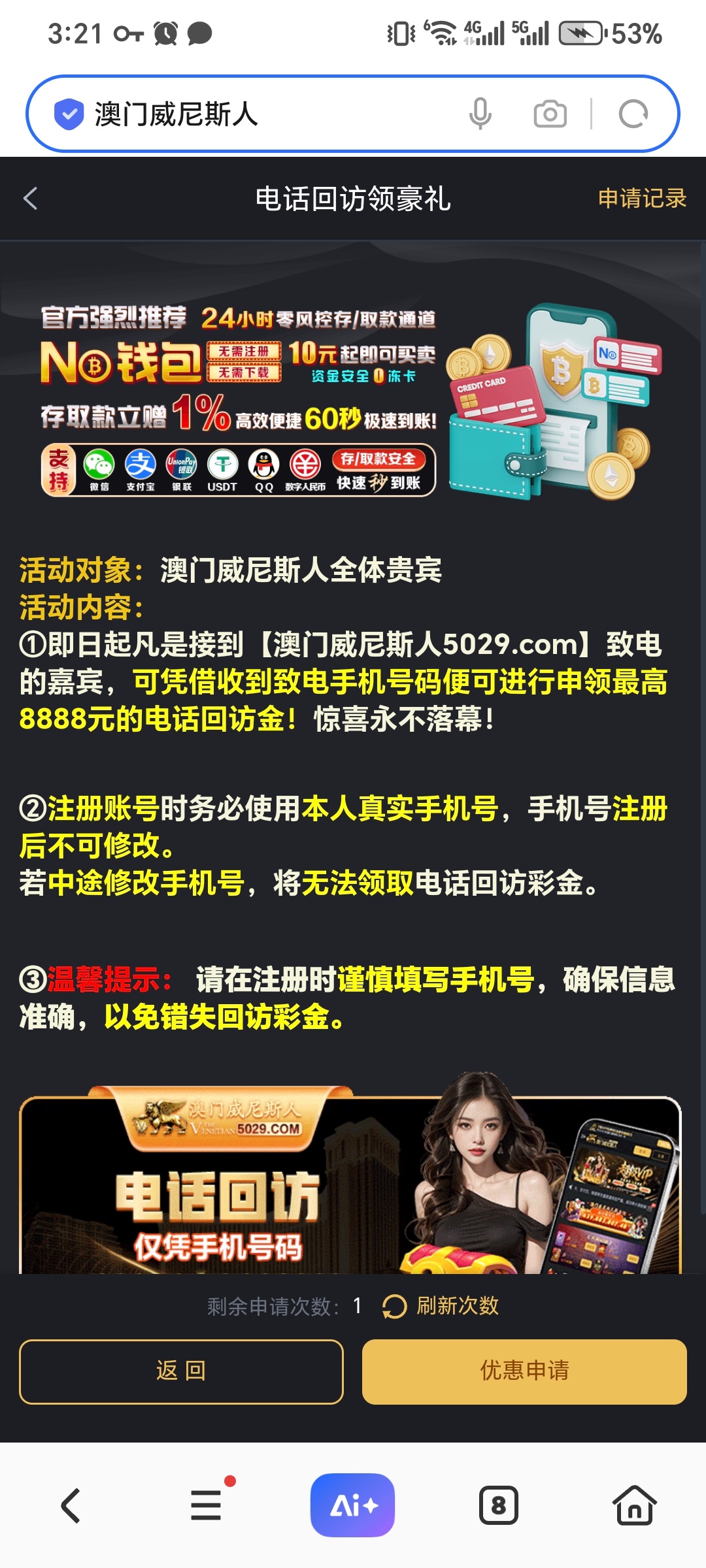 费半天劲,还以为要送多少,死全家了狗庄。下载app自己在综合里一直往下拉申请,网址 712829.com 有号的去试试,没号的就别去白费劲了 反正也没多少