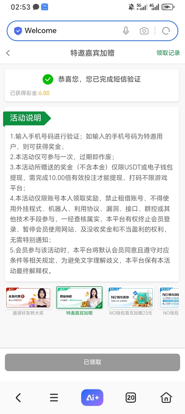 碰瓷短信特邀彩金