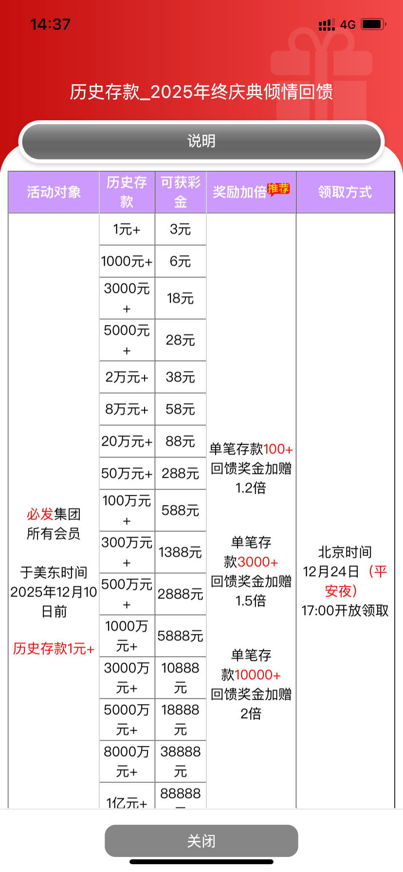 圣诞福利有两个 分别是历史充值彩金只要充值过就有