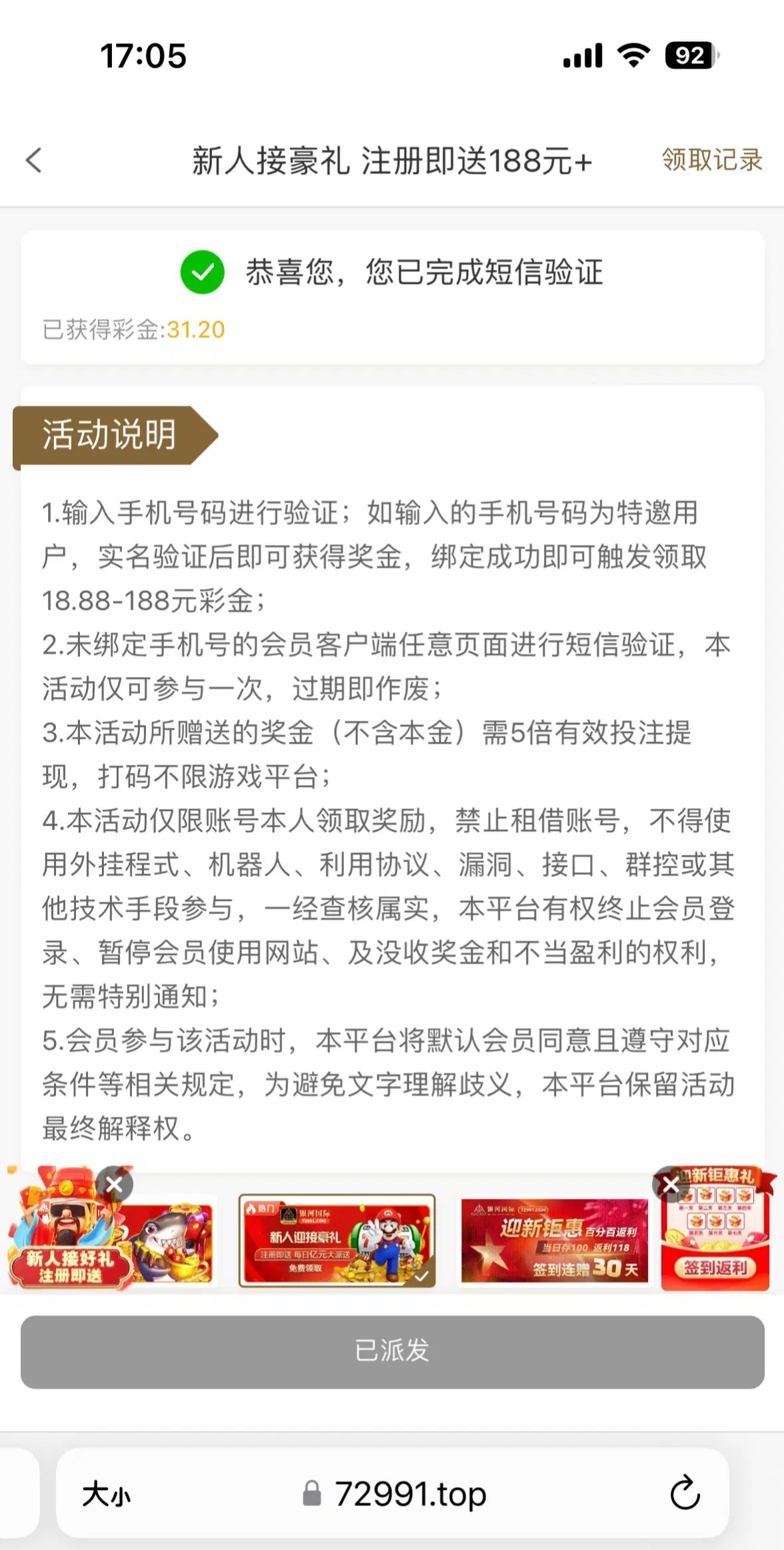 我是接到电话然后才去领的你们可以去试一下72991.com