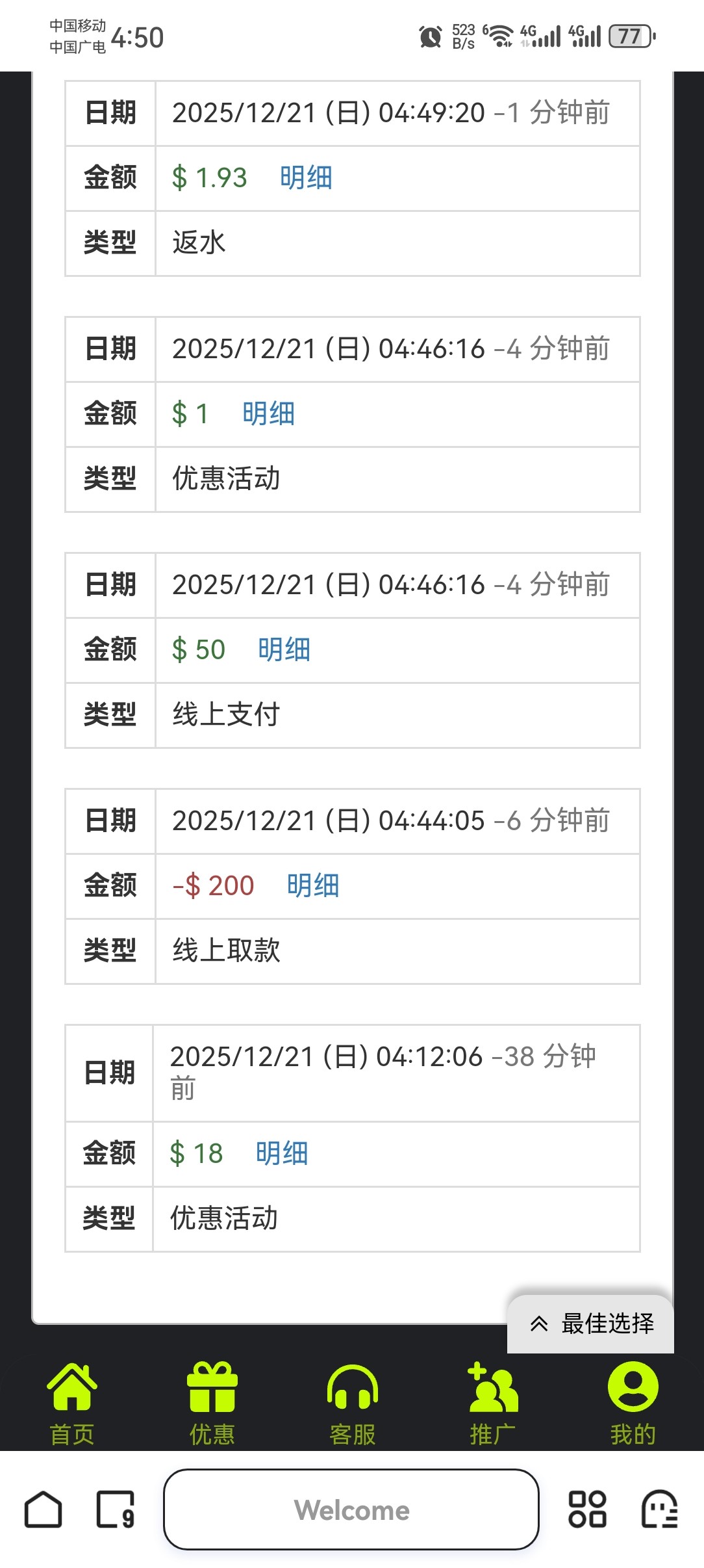 有号的去看看,送了我18,已出款200,回冲50没水了。白嫖为主,团饭为辅,切勿充值