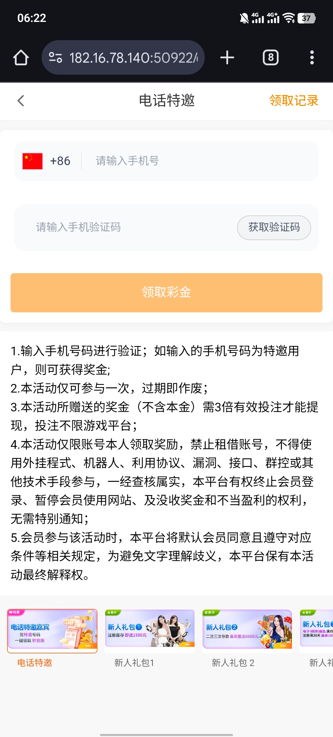 我之前领到过了 没打出来 特邀只能碰瓷 因为24小时后会失效 你们用特邀手机号码绑定接一下码 3倍流水可以出款