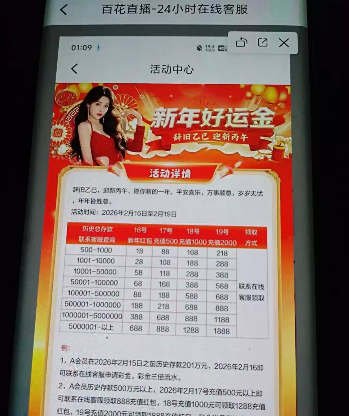 百花历史充值彩金