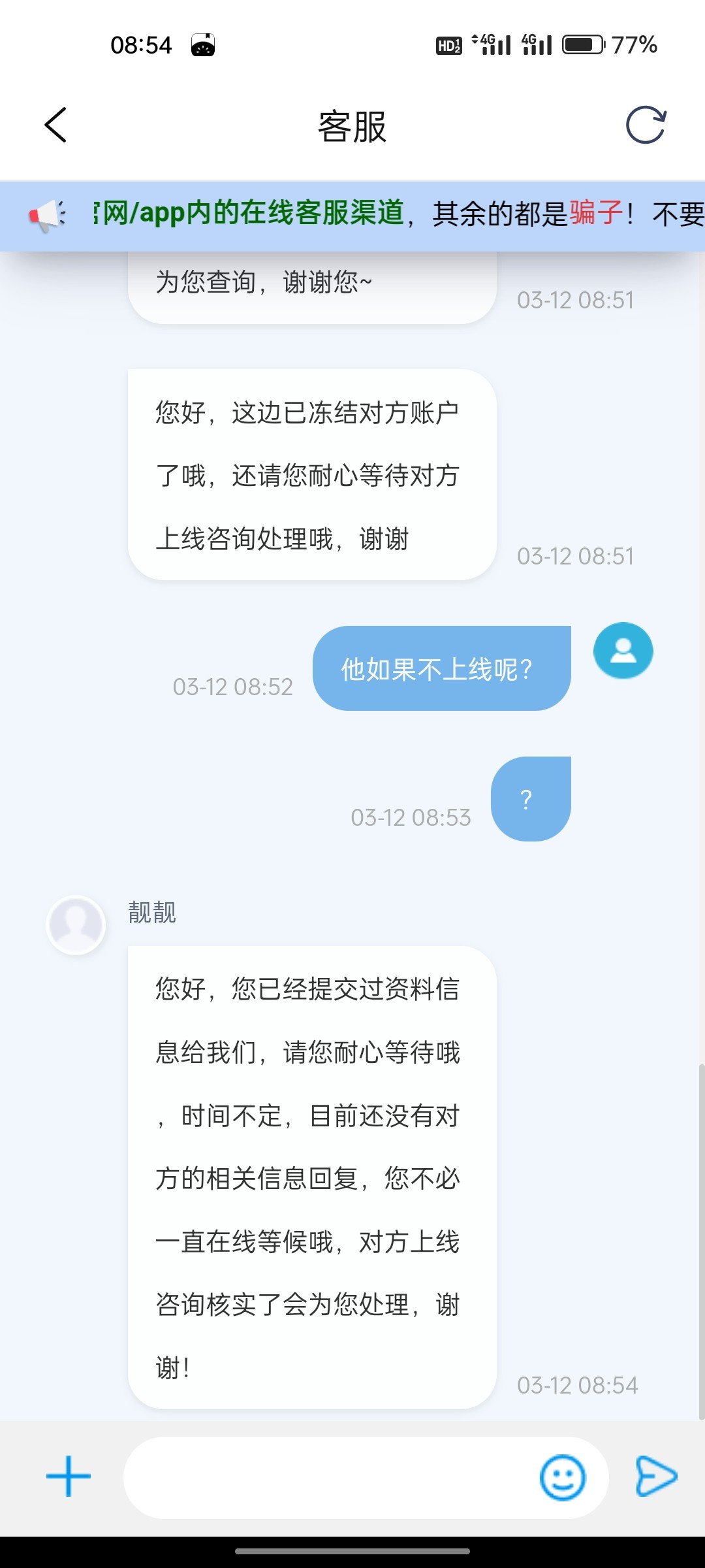 客服不给弄,要等对方进线咨询,时间不定,不知道要等多久
