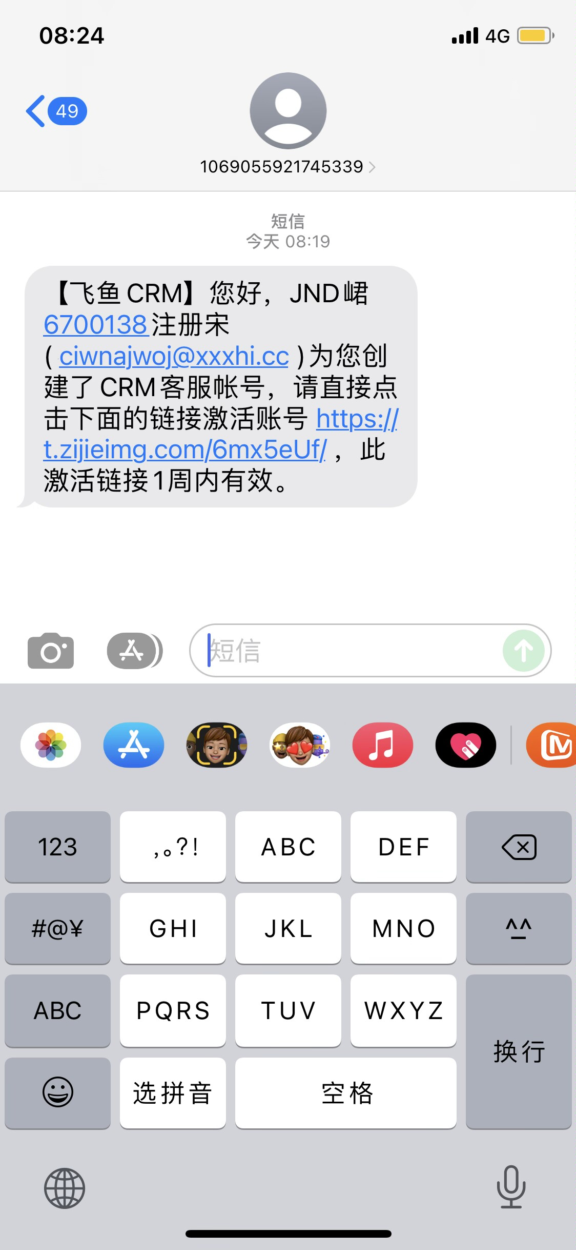 ( ciwnajwoj@xxxhi.cc )为您创建了CRM客服帐号,请直接点击下面的链接激活账号https://t.zjjieimg.com/6mx5eUf/,此激活链接1周内有效。